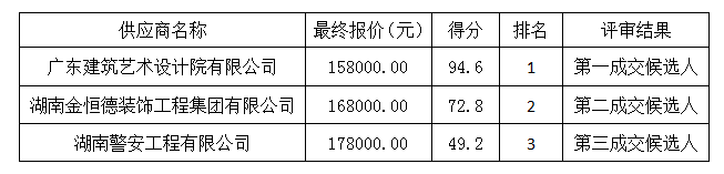 乐动在线体育·(China)官方网站的乐动在线体育·(China)官方网站食堂装饰装修项目设计服务采购竞争性磋商采购项目于 2019年07月26日结束,现将成交结果公告如下: