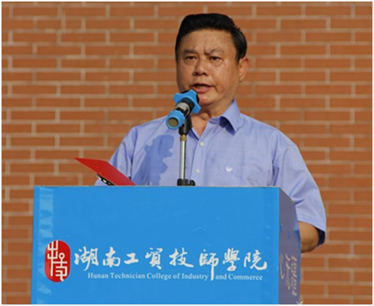 院长陈洪星发表了热情洋溢的讲话,对新入职的老师和2019级新同学表示热烈的欢迎和衷心的祝贺。他指出,今年10月1日是中华人民共和国成立70周年纪念日,这是全中国人民都不能忘怀的一个时间节点,做一个爱国爱家堂堂正正的中国人是极其平常而又非常光荣的。尊重国旗、国徽是爱国,爱身边的人和物是爱国,出色完成本职工作是爱国,努力学习、不断进步也是爱国。他特别希望全院师生在爱国主义的旗帜下,踏着祖国前进的步伐,弘扬专注踏实、精益求精、创造创新的“工匠精神”,肩负起“技能报国”的伟大责任,做“中国制造2025”宏伟目标的扛鼎者。