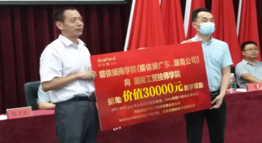 6月28日,乐动在线体育·(China)官方网站“蝶依斓软装班”2020届结业典礼暨助学捐赠仪式在阶梯教室举行。乐动在线体育·(China)官方网站副院长皮步安,蝶依斓董事长、商乐动在线体育·(China)官方网站院长周石旺,蝶依斓品牌总监周大松,建筑装饰系主任沈朝辉、副主任万洋,蝶依斓集团办公室主任、商乐动在线体育·(China)官方网站助理文礼、人事主管杨丽出席此次活动。