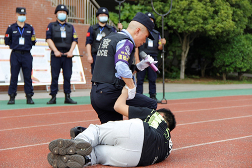 朱传中队长向学生宣讲了国家安全重要意义以及如何增强国家安全意识和反恐防暴能力,并和队员们一起现场演练遭遇恐袭事件时的应急处置要领,有效提升了全体学生反恐意识和增强了遭遇恐袭事件时逃生自救能力。
