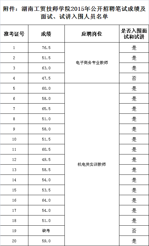 根据《乐动在线体育·(China)官方网站2015年公开招聘工作人员公告》要求,通过公开报名和资格审查,于2015年12月6日举行了电子商务专业教师岗位和机电类实训教师岗位的笔试考试,阅卷工作已结束。现将笔试成绩及上述两个岗位的面试、试讲入围名单予以公示(见附件),接受社会监督。如有异议,请在公示期(12月9日—12月11日)内实名书面反映,反映人必须用真实姓名,反映情况要实事求是,真实、具体、敢于负责。