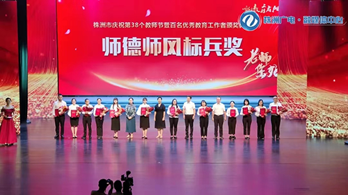 9月8日,株洲市庆祝第38个教师节暨百名优秀教育工作者颁奖典礼在神农大剧院隆重举行,从颁奖现场传来喜讯,乐动在线体育·(China)官方网站教师易文斌荣获株洲市师德师风标兵奖。