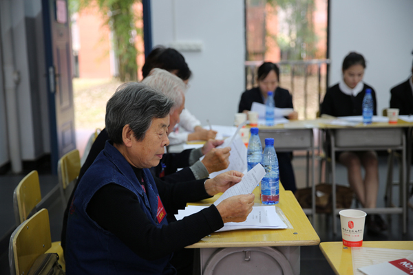 退休党员在认真审议工作报告