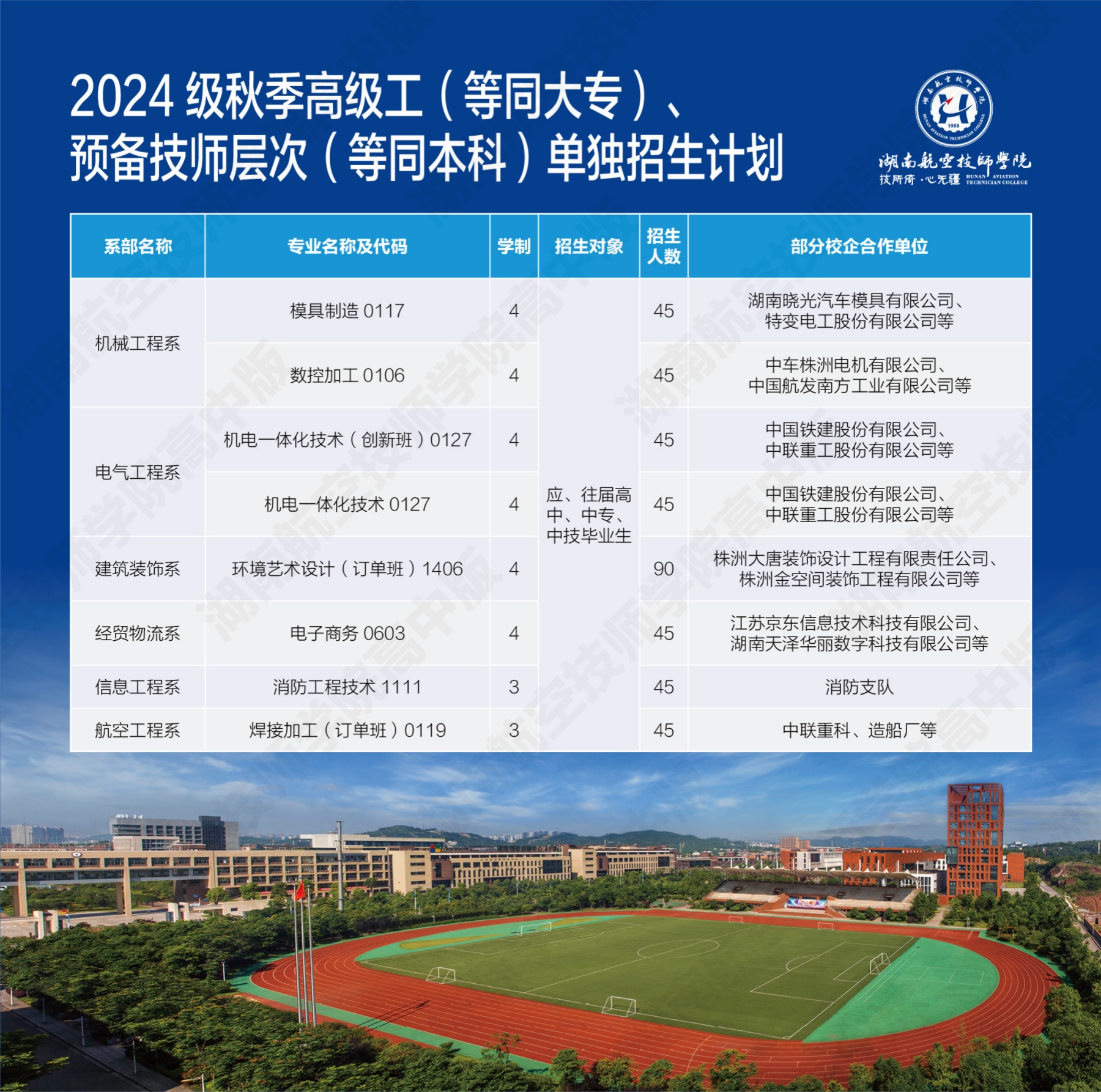 湖南航空技师乐动在线体育·(China)官方网站2024级高级工、预备技师层次单独招生计划(面向高中、中专、中技毕业生)