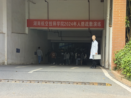 11月1日上午9:30,伴随着我市人防警报鸣放声响起,我院2024年秋季新生“人防”应急疏散演练同步开始,3000余新生按预定方案有序从各自教学楼按指定疏散路线迅速撤离到宿舍楼五栋地下人防工事,演练圆满完成。