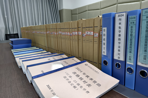 检查组首先随机抽取部分学生进行实名核查,深入了解学籍资助管理情况。随后听取了我院关于学籍资助工作的情况汇报,详细了解了学籍管理、资助政策宣传、资金发放、档案管理等方面的情况,认真查阅了相关资助资料。